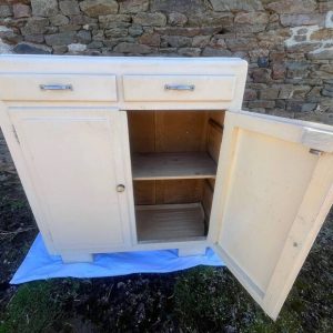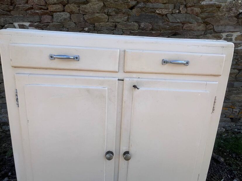 Charmant buffet ancien au style simple et authentique, parfait pour une ambiance campagne ou maison de famille. Sa teinte blanche légèrement patinée lui donne beaucoup de douceur et de caractère. Fonctionnel, il offre deux tiroirs pratiques et un bel espace de rangement intérieur avec étagère. Idéal dans une cuisine, une entrée ou un salon pour une déco chaleureuse et intemporelle. Une pièce facile à intégrer, qui apporte immédiatement du cachet.