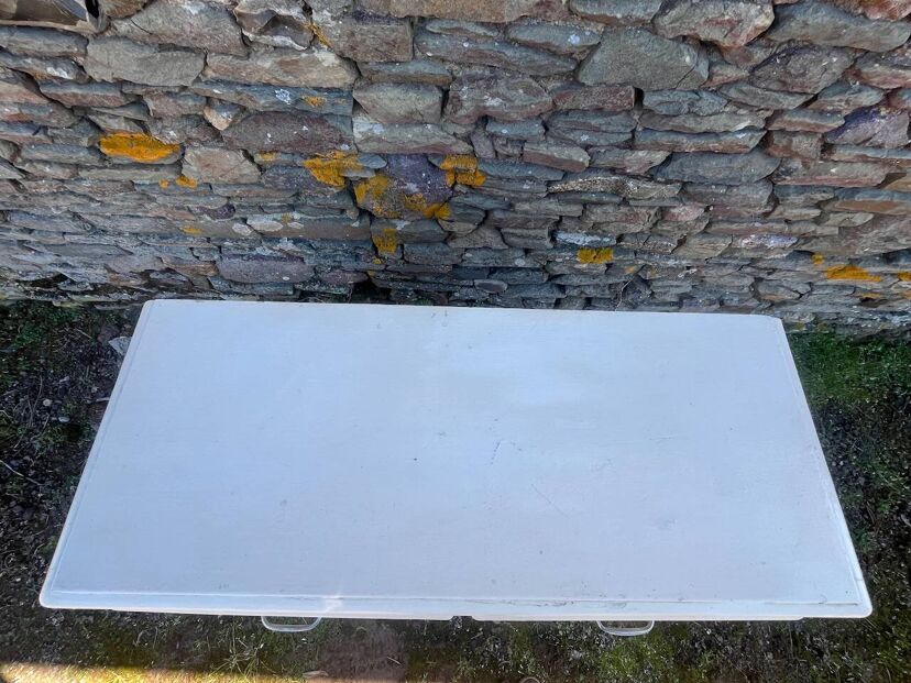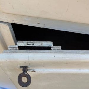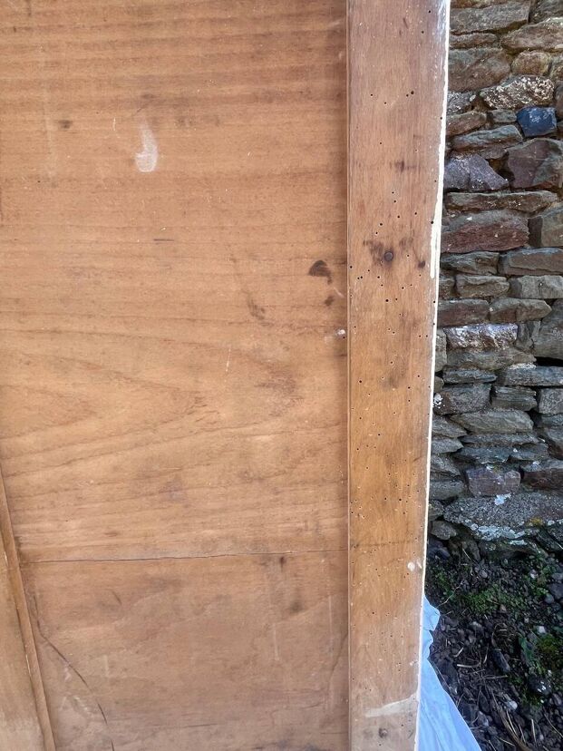 Le meuble a été traité – Quelques traces du temps et d’usage dont taches, rayures, décolorations, frottements, coups, manques de bois, trous de vers et autres marques.