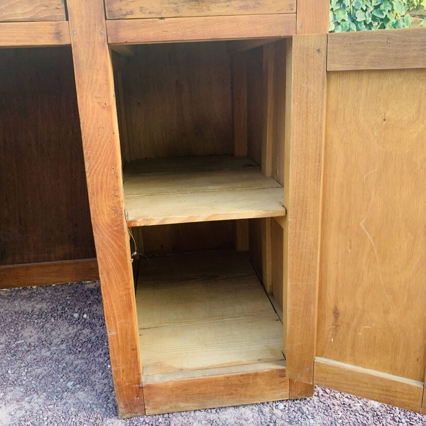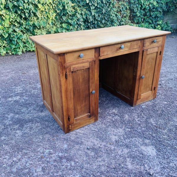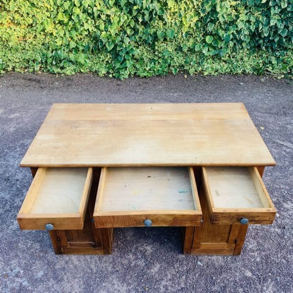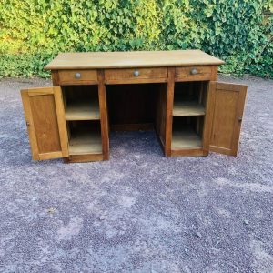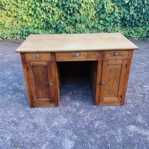 Très joli bureau ancien de maître d’école, plein de charme et de caractère. Ce meuble typique séduit par son authenticité et sa fonctionnalité, avec ses trois tiroirs et ses deux portes offrant un bel espace de rangement. Sa très belle patine d’origine lui confère un cachet unique, qui plaira aux amateurs de mobilier vintage et rustique. Idéal pour un espace de travail à l’esprit rétro, une chambre d’enfant ou une pièce de vie chaleureuse. Ce bureau combine esthétique, histoire et praticité, un véritable coup de cœur pour les amoureux de mobilier ancien- bon état général – Quelques traces du temps et d’usage dont taches, rayures, décolorations, frottements, coups, et autres marques – {Très joli bureau ancien de maître d’école, plein de charme et de caractère. Ce meuble typique séduit par son authenticité et sa fonctionnalité, avec ses trois tiroirs et ses deux portes offrant un bel espace de rangement. Sa très belle patine d’origine lui confère un cachet unique, qui plaira aux amateurs de mobilier vintage et rustique. Idéal pour un espace de travail à l’esprit rétro, une chambre d’enfant ou une pièce de vie chaleureuse. Ce bureau combine esthétique, histoire et praticité, un véritable coup de cœur pour les amoureux de mobilier ancien- bon état général – Quelques traces du temps et d’usage dont taches, rayures, décolorations, frottements, coups, et autres marques