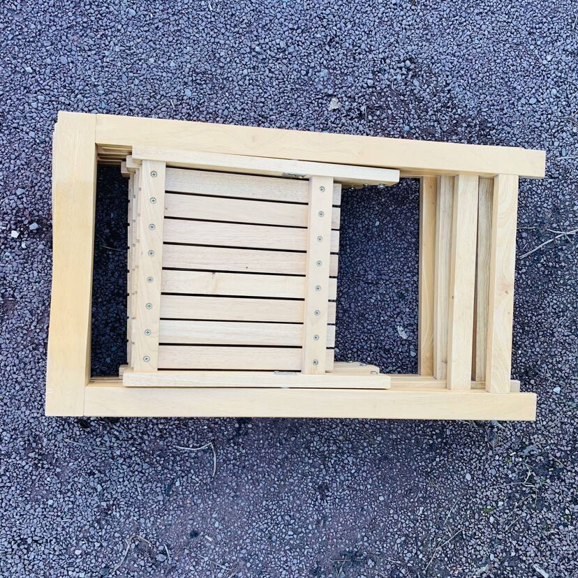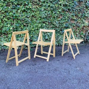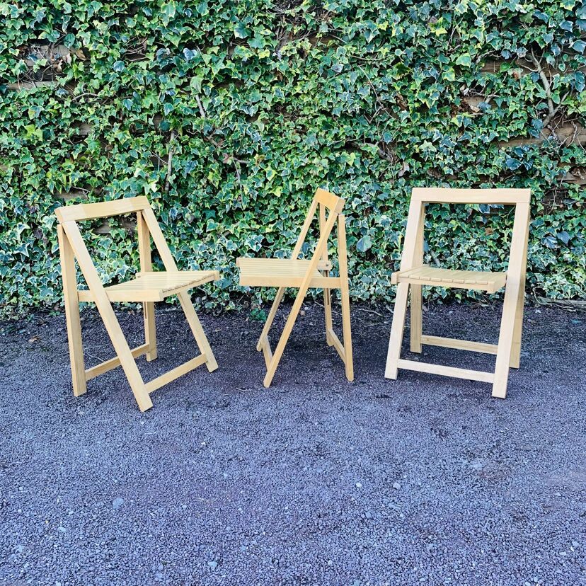 Charmant ensemble de 3 chaises pliantes en bois dans le goût du designer Aldo Jacober.
