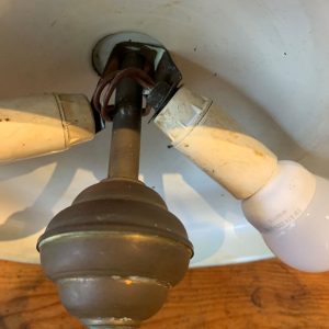 Traces/marques du temps et d’usage dont rayures, taches, petits points blancs et vert, et autres marques – Système électrique fonctionnel – Vendue avec ses 2 ampoules e14