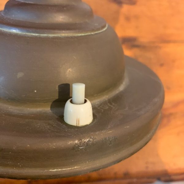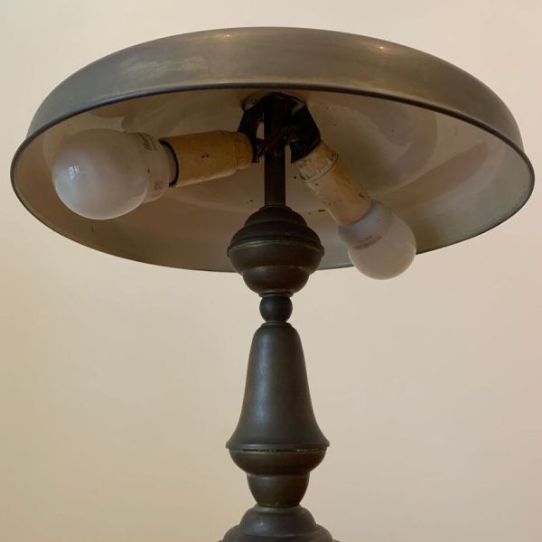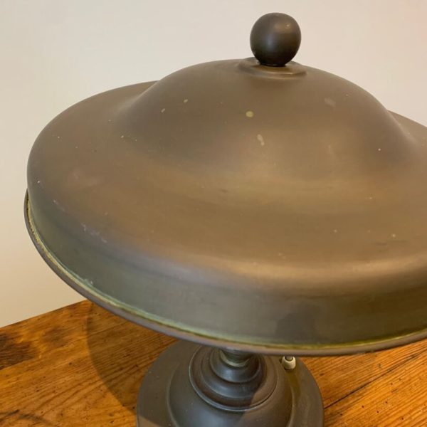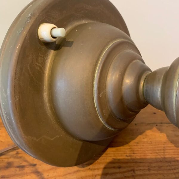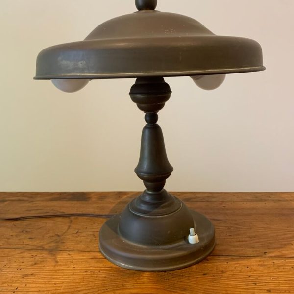 Très jolie lampe, modèle champignon, en laiton patinée avec le temps.
