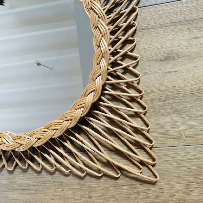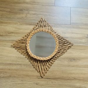 Apportez une touche rétro et naturelle à votre décoration avec ce miroir mural en osier au design peu commun. Sa forme originale attire immédiatement le regard et en fait une pièce unique, idéale pour une entrée, un salon ou une chambre – Quelques traces du temps et d’usage dont taches, décolorations, coups, et autres marques