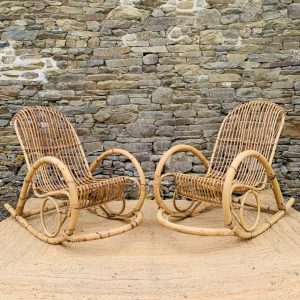 Paire de Rocking-chair en rotin par rohe noordwolde