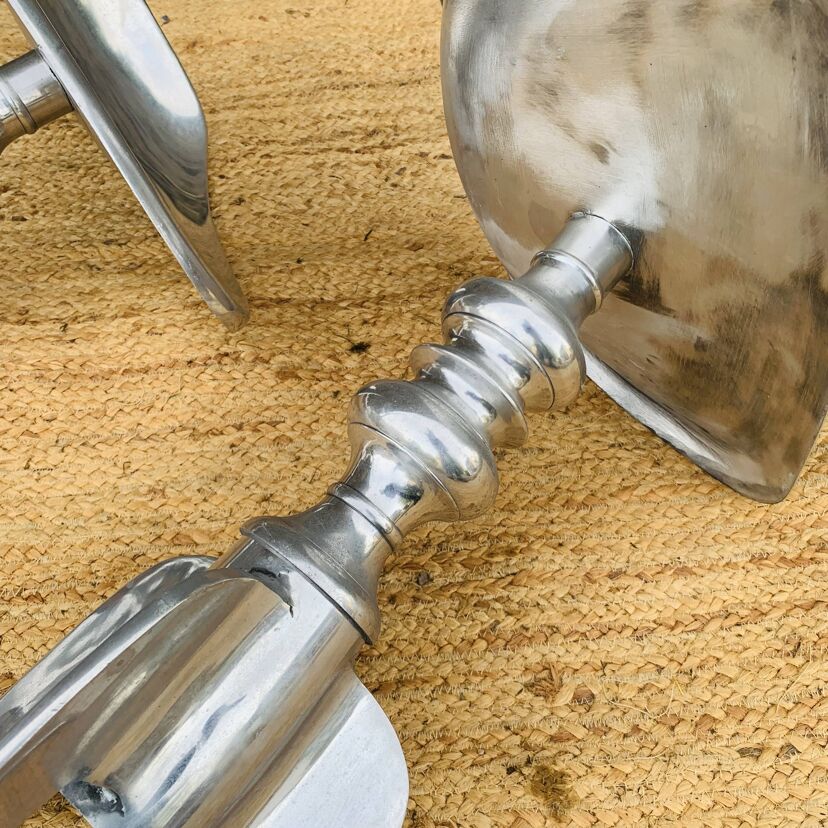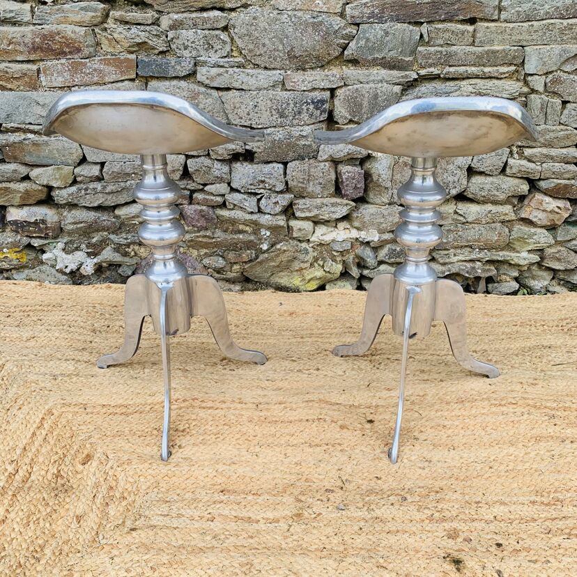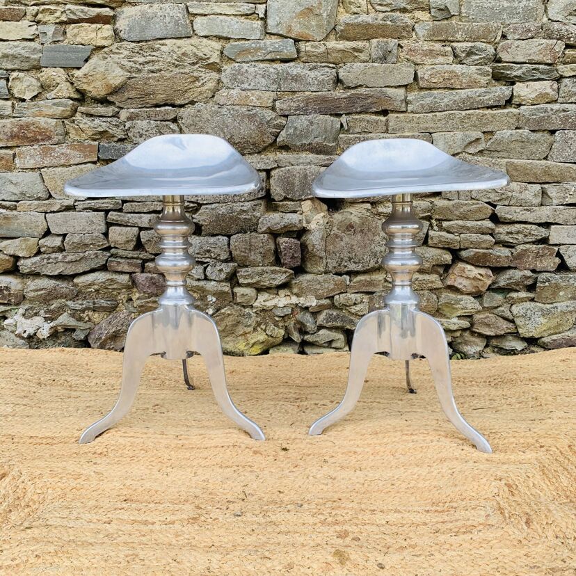 Élégante et originale, cette paire de tabourets marie avec finesse l’esprit classique du XIXᵉ siècle et la modernité du métal poli.