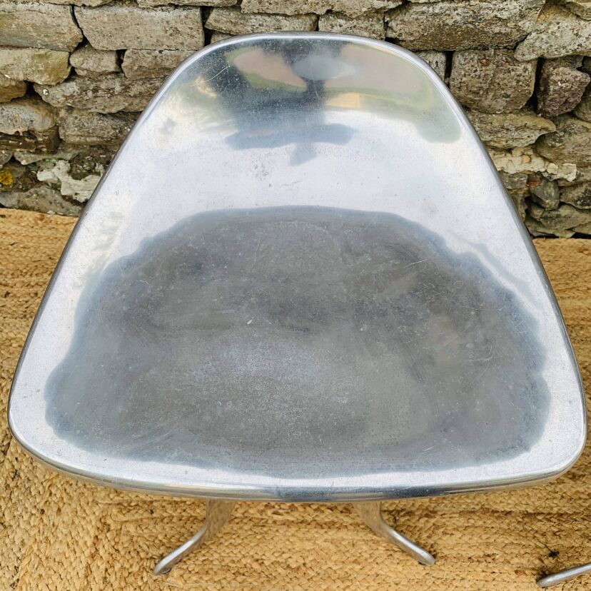 Leur structure entièrement en aluminium leur confère à la fois robustesse, légèreté et brillance, tandis que le piètement travaillé rappelle les formes raffinées du style Napoléon III. L’assise incurvée en forme de selle offre un confort discret et un rendu sculptural du plus bel effet. Ces tabourets apportent une touche chic et intemporelle dans un intérieur classique, industriel ou contemporain. Idéals comme sièges d’appoint, tabourets de comptoir ou pièces décoratives, ils attirent immédiatement le regard et se marient facilement à tous les styles – Quelques traces du temps et d’usage dont taches sur les assises, décolorations, frottements et autres marques – {hauteur: 67cm – hauteur assise: 56cm – largeur: 41cm – largeur assise: 41cm – profondeur: 41cm – profondeur assise: 31cm} – Livraison possible.