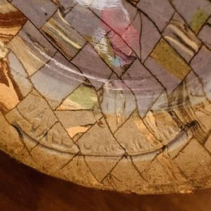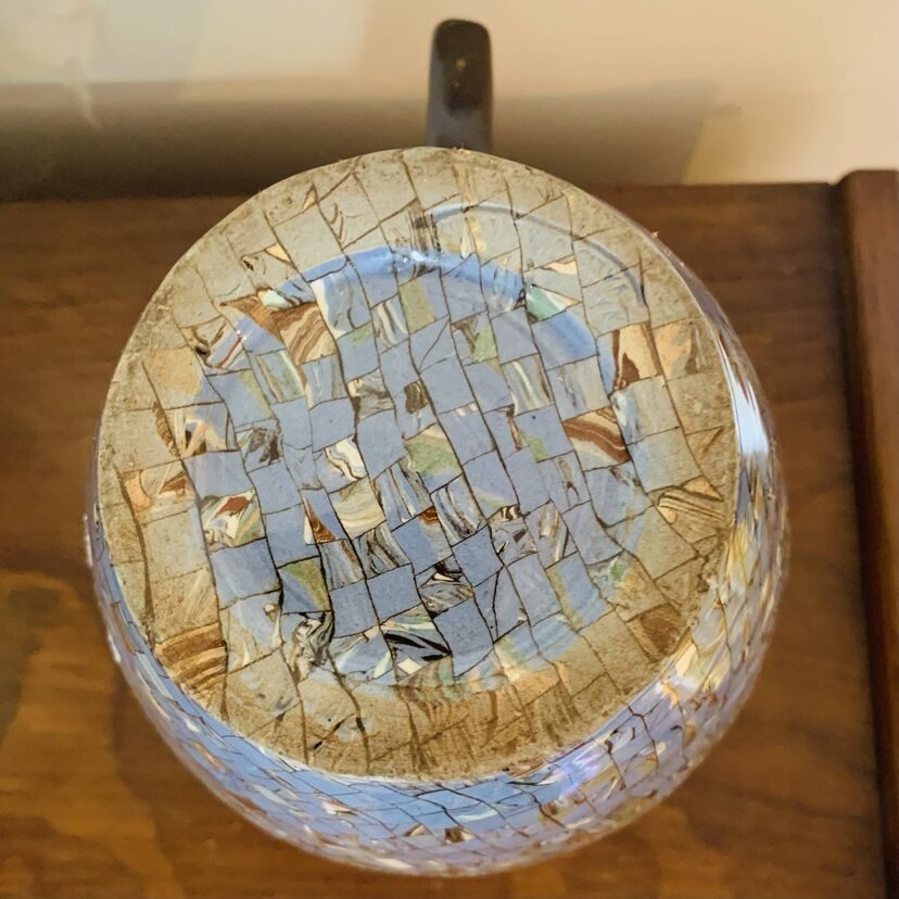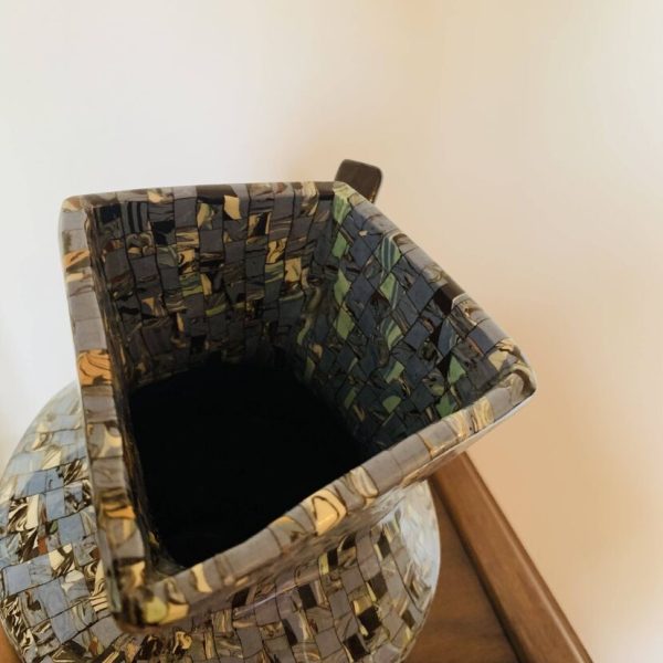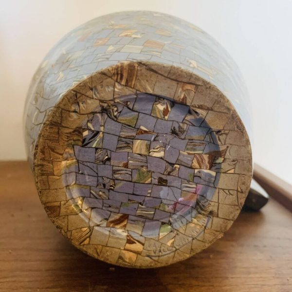Superbe pichet en céramique signé Gerbino, réalisé à Vallauris. Il se distingue par son remarquable décor en mosaïque de terres colorées, une technique emblématique de l’atelier Gerbino qui confère à chaque pièce un rendu unique et vibrant. Le corps du pichet présente de subtils jeux de couleurs et de textures, témoins d’un savoir-faire artisanal exceptionnel. Son élégante silhouette allie authenticité et modernité, typiques des créations de Vallauris dans la seconde moitié du XXᵉ siècle. Objet décoratif de collection mais aussi fonctionnel, il apportera une touche méditerranéenne raffinée à tout intérieur. Une pièce rare et recherchée, idéale pour les amateurs de céramique et de design vintage – Très bon état. Quelques traces du temps et d’usage et autres marques
