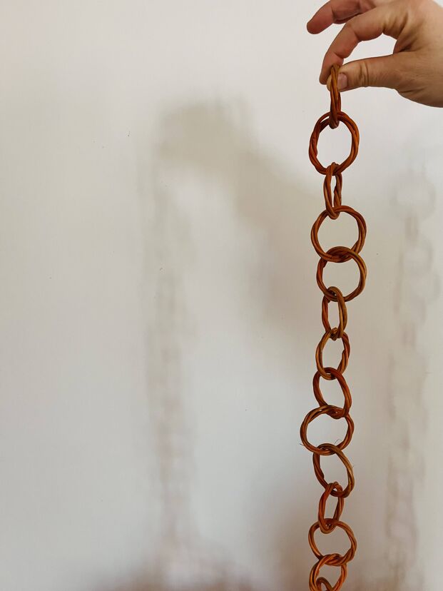 Nombreux anneaux en rotin pour la suspendre mais vous pouvez tout à fait la réduire.