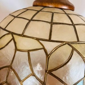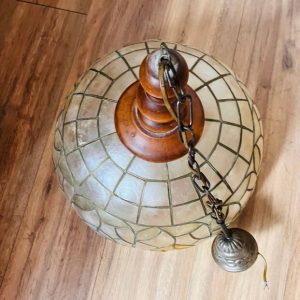 Elle est en bon état général avec quelques imperfections dont taches, frottements, petits manques de nacre – Le système électrique est neuf: douille E27 (vendu sans ampoule) – Longueur du fil ajustable (jusqu’à 60 cm) – {diamètre abat-jour: 45, 5cm – hauteur abat-jour: 20cm- hauteur totale: 85cm}.