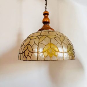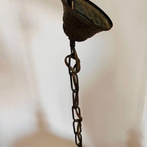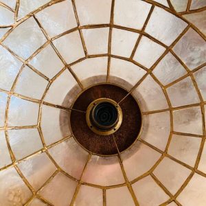 Jolie suspension style Tiffany Art déco vintage, années 60-70, en nacre blanche sertie de laiton avec un joli décor -motifs fleuris – Idéal dans une entrée ou une chambre !