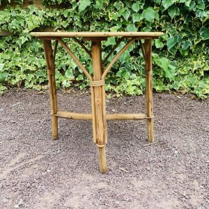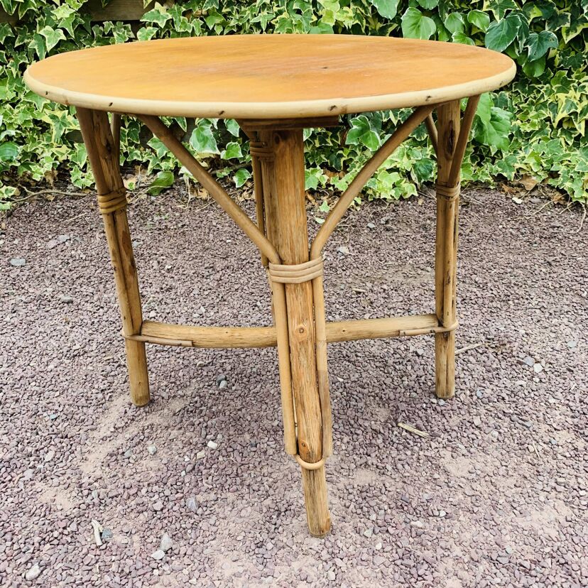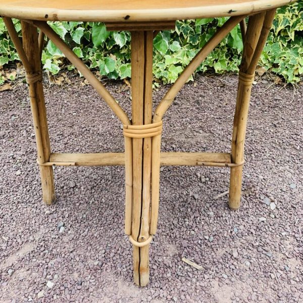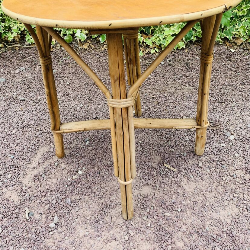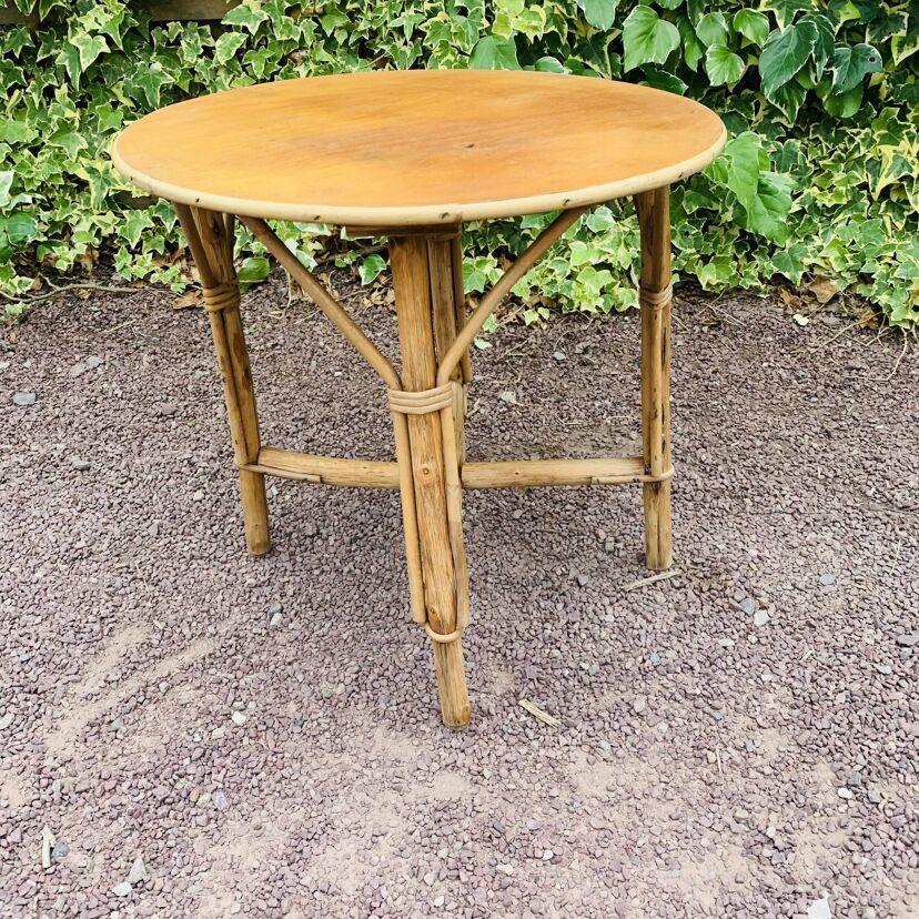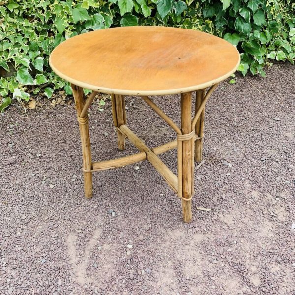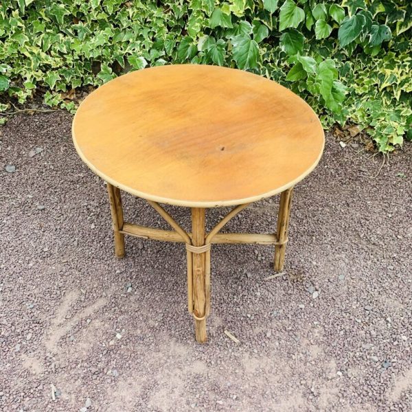 Charmante table basse ronde en rotin, au design léger et chaleureux, idéale pour apporter une touche bohème, vintage ou naturelle à votre intérieur. Parfaite dans un salon, une véranda ou même en bout de canapé, elle s’intègre aussi bien dans une déco rétro que dans un intérieur plus contemporain- à noter quelques pieds présentent des fissures sur la hauteur mais qui ne remettent pas en cause la stabilité de la table – Quelques traces du temps et d’usage dont taches, rayures, décolorations, frottements, coups, et autres marques