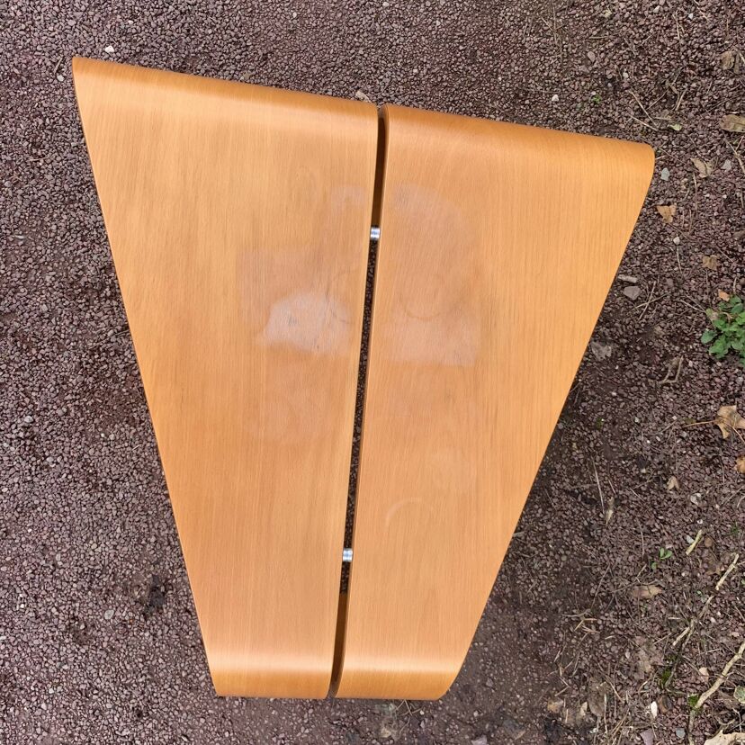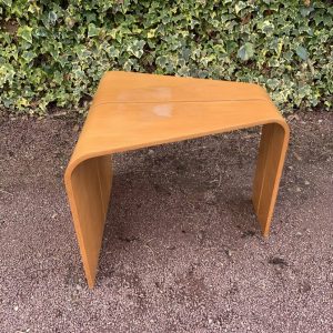 Elle est réalisée en contreplaqué stratifié de hêtre ouvragé, offrant à la fois chaleur du bois et belle résistance. Son piètement épuré et ses lignes douces en font une pièce facile à intégrer dans un intérieur vintage, contemporain ou design – Quelques traces du temps et d’usage dont taches, rayures, décolorations, frottements et autres marques {hauteur: 51cm – largeur: 62cm – profondeur: 24 et 62cm}.