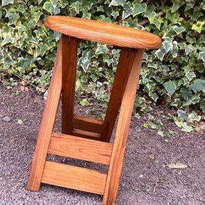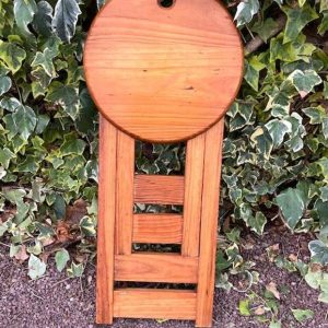 Très joli tabouret pliant en pin dans le goût d’adrian reed – assise ronde – Robuste et pratique, il se déplie en un clin d’oeil et se glisse partout pour un rangement facile et discret – Quelques traces du temps et d’usage dont taches, rayures, décolorations, frottements, coups, et autres marques