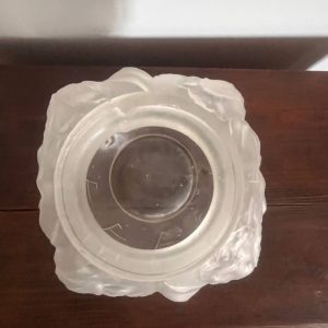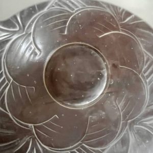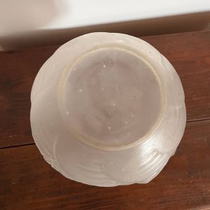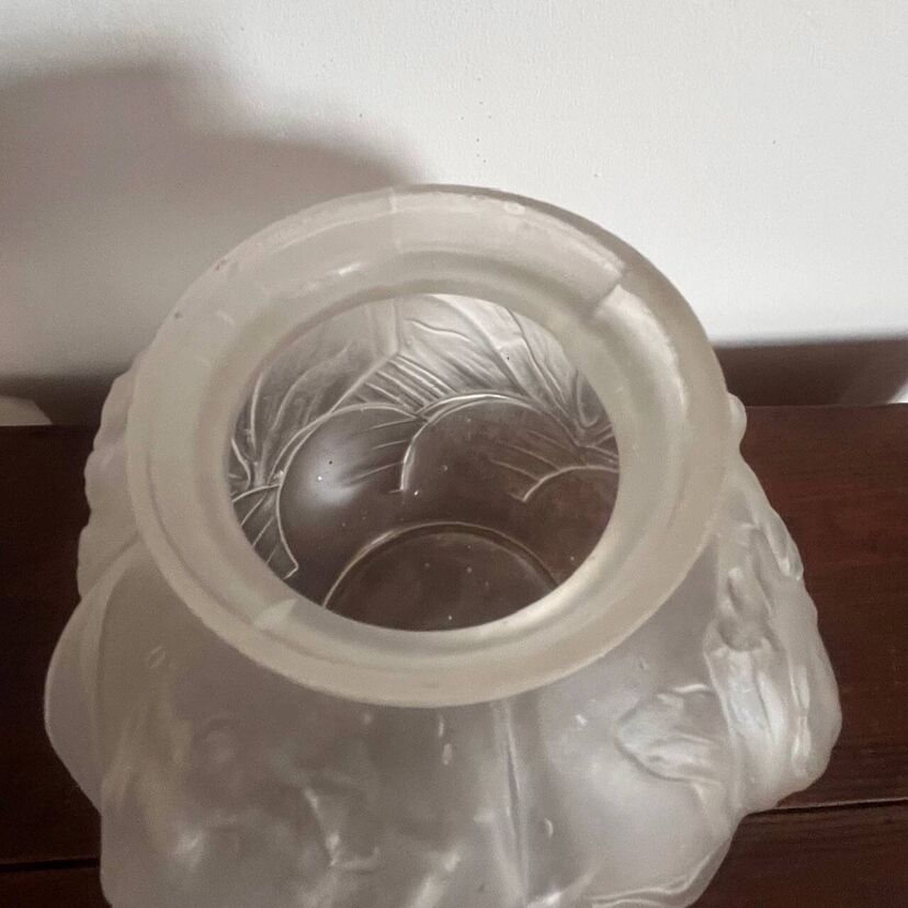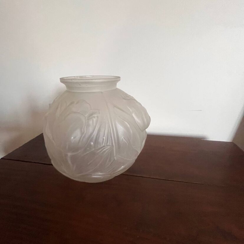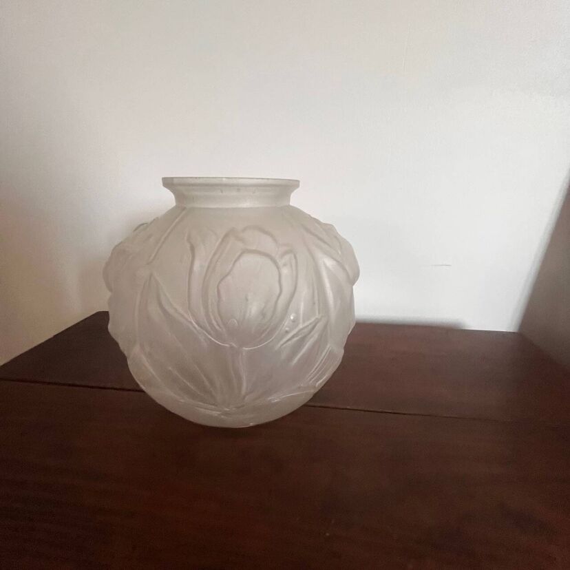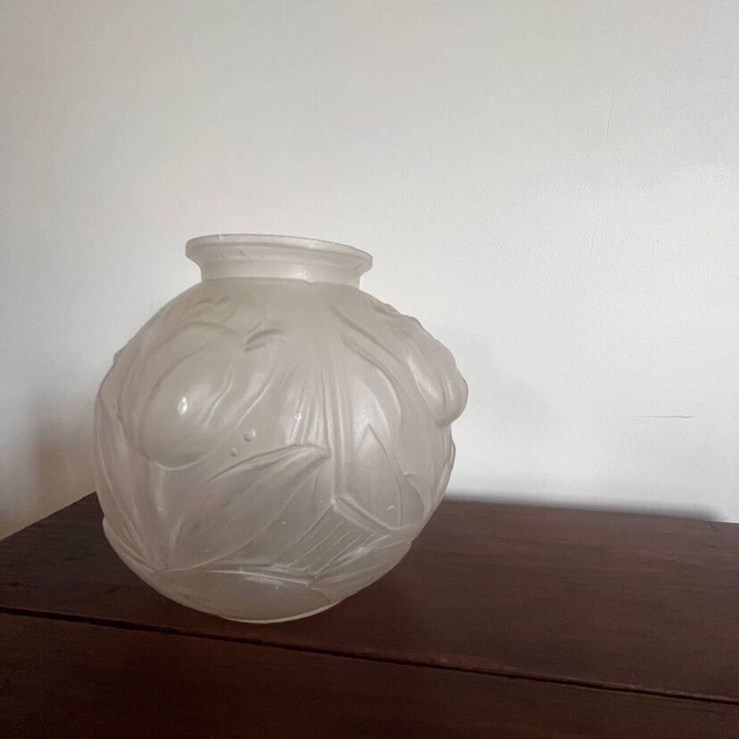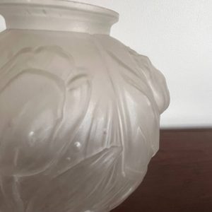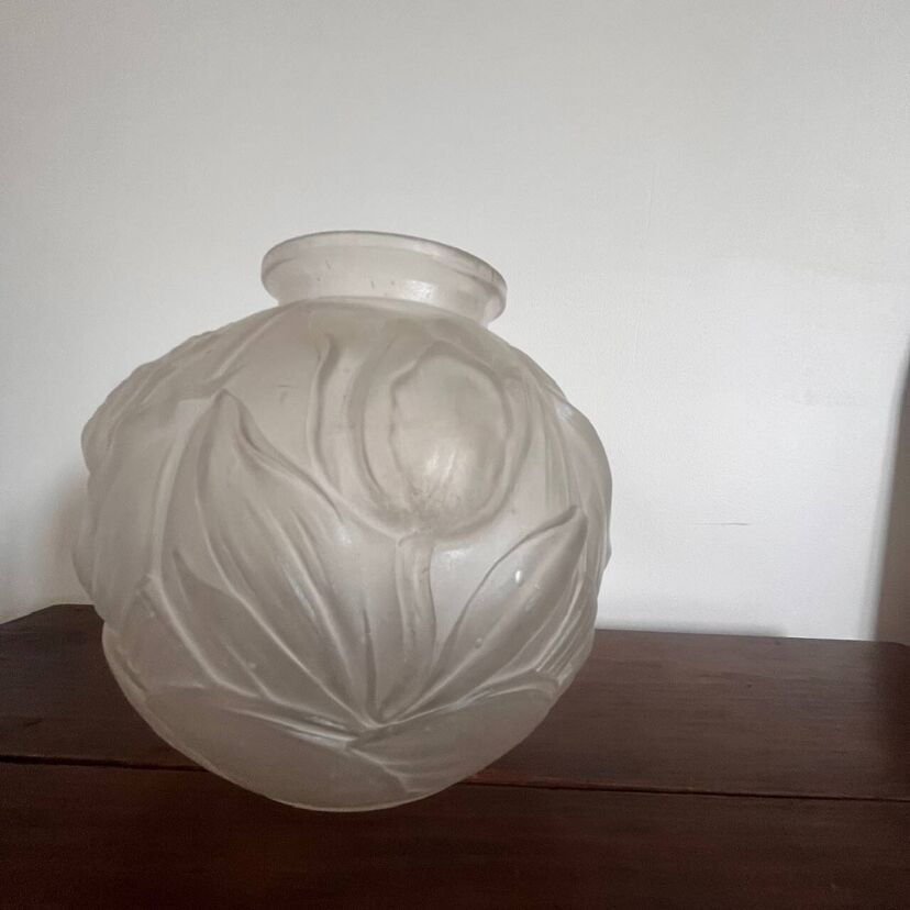 Élégant vase boule en verre dépoli, délicatement orné d’un décor de tulipes en relief.