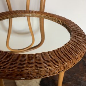 miroir rond en rotin tressé, 1960’s