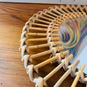 Le miroir en rotin est un classique intemporel qui s’intègre parfaitement dans les intérieurs vintage, bohèmes ou scandinaves. Il est également en parfaite harmonie avec les tendances actuelles de décoration intérieure axées sur le retour à la nature et les matériaux durables – Quelques traces du temps et d’usage dont taches sur la glace , rayures, décolorations, frottements et autres marques