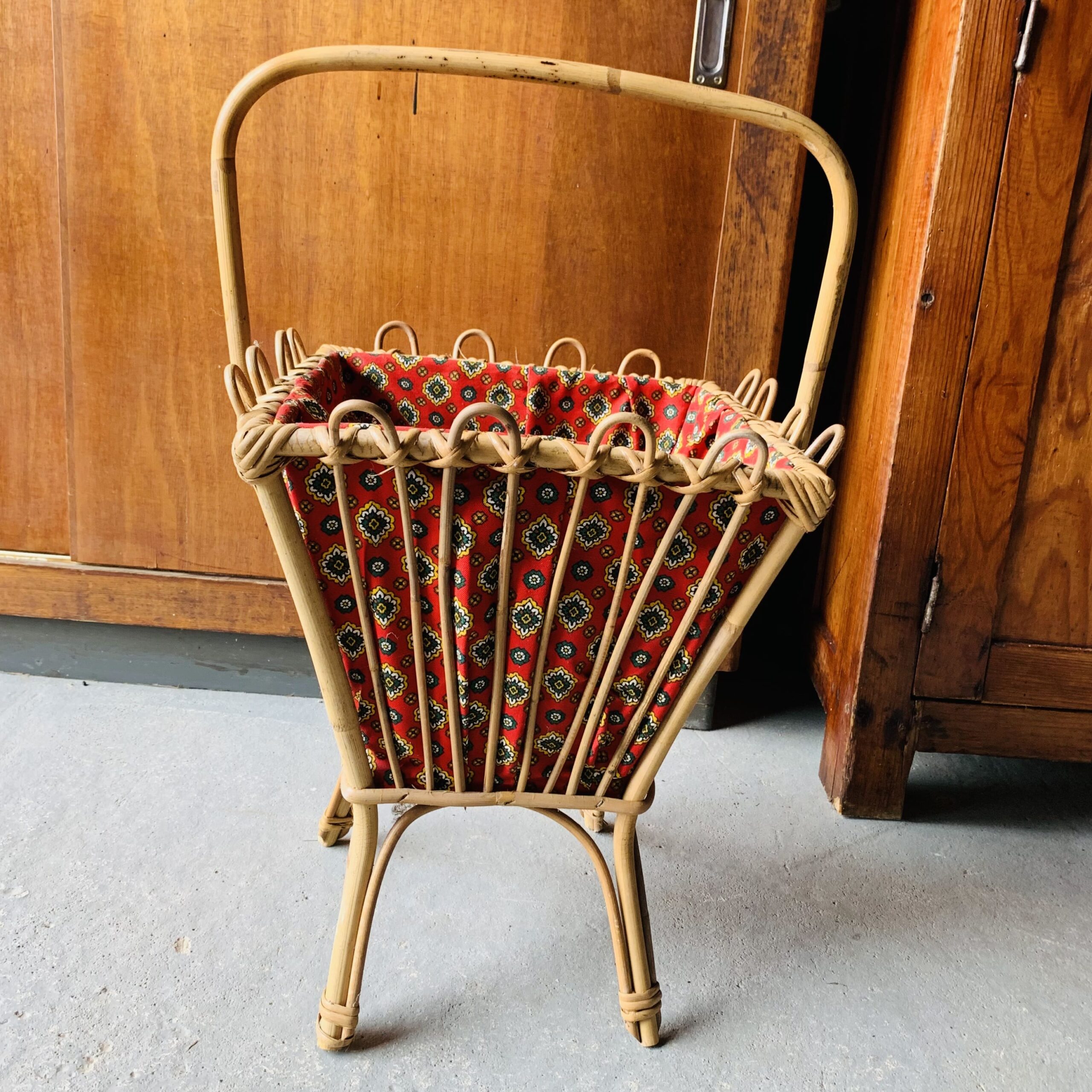 [sibwp_form id=1]Worker ready to use and decorate your interior – Rattan structure – vintage red patterned fabric – some traces of time – In good general condition –