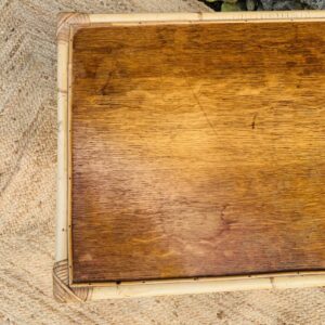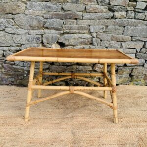 Magnifique table basse rectangulaire des années 60 en rotin, un classique intemporel au charme vintage ! Ses lignes épurées et son design reflètent parfaitement le style iconique de cette époque, avec des matériaux naturels et une allure élégante qui apportera une touche chaleureuse et rétro à votre intérieur – Quelques traces du temps et d’usage dont taches, rayures, décolorations, frottements, et autres marques