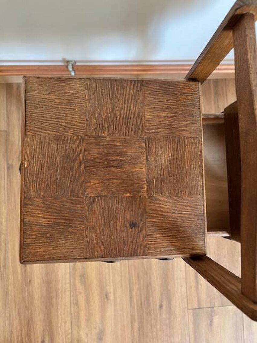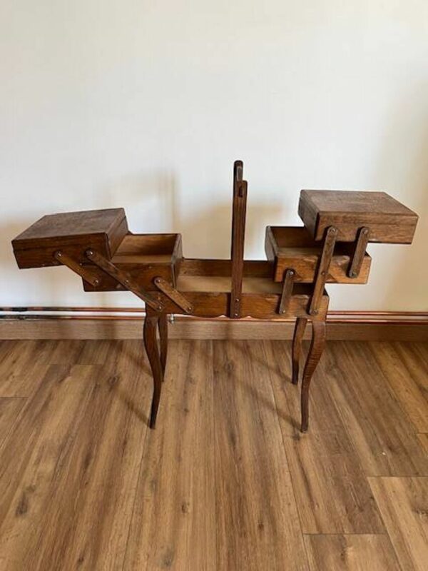 Cette travailleuse vintage porte les marques du temps, chaque tâche, rayure et décoloration racontant une histoire de créativité et d’artisanat. Ses frottements et coups témoignent de décennies d’utilisation passionnée. Un véritable trésor pour les amateurs de meubles authentiques et chargés d’histoire. Offrez-vous une pièce unique qui a su traverser les époques avec caractère et élégance – {hauteur: 72cm – largeur: 46cm – profondeur: 23cm}